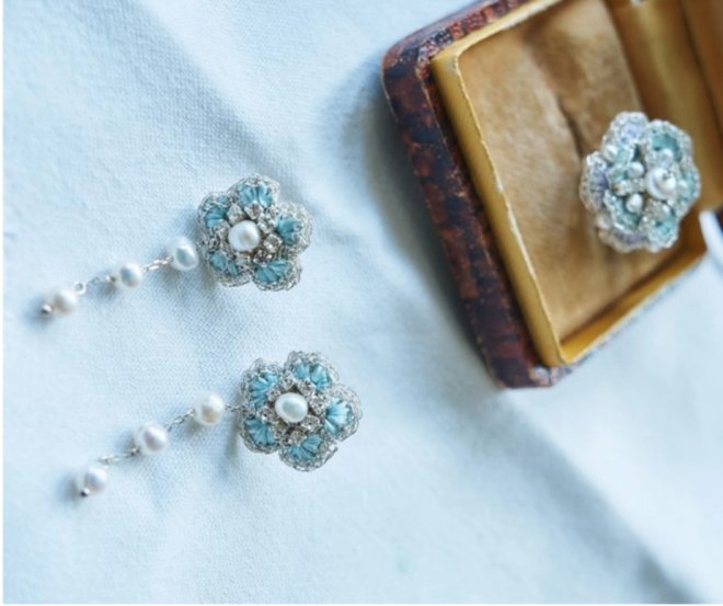 Motív, ktorý som si vybrala z kroja, ma inšpiroval k vytvoreniu šperkov – prepojeniu tradície s jemnosťou čipky a leskom hodvábu, a pretvorila do svojho rukopisu.